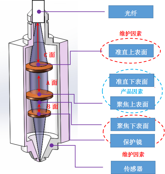 2)使用非原廠配件、操作失誤或外圍設(shè)備導(dǎo)致保護(hù)鏡破裂或燒穿引起內(nèi)部鏡片污染,注意檢查輔助設(shè)備運(yùn)行是否正常,如比例閥,空壓機(jī)等。