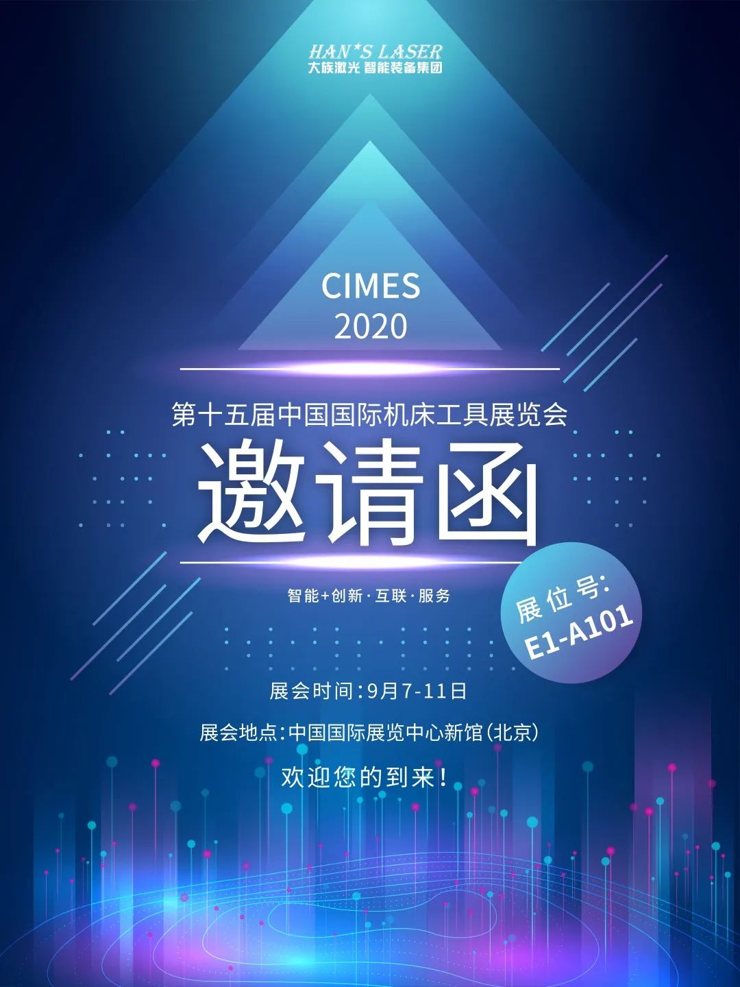 第十五屆中國國際機床工具展覽會,將于2020年9月7-11日在中國國際展覽中心新館(北京)舉行,大族激光智能裝備集團攜激光智能制造系統解決方案亮相,展位號E1-A101,期待您的蒞臨參觀!