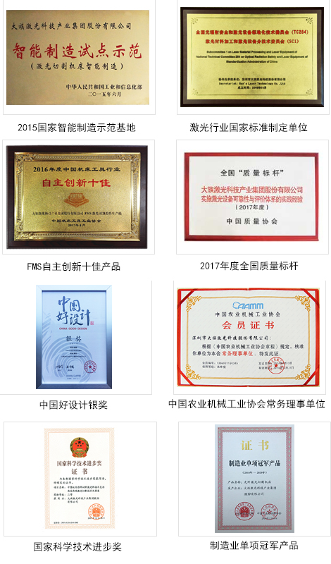 大族激光智能裝備集團(tuán)是國(guó)家首批智能制造試點(diǎn)示范基地、國(guó)家高新技術(shù)企業(yè)、工信部智能制造新模式應(yīng)用項(xiàng)目建設(shè)單位、激光行業(yè)國(guó)家標(biāo)準(zhǔn)制定單位、國(guó)家科技重大專項(xiàng)主持單位,榮獲“國(guó)家科學(xué)技術(shù)進(jìn)步獎(jiǎng)”“國(guó)際信譽(yù)品牌”“全國(guó)質(zhì)量標(biāo)桿”等大獎(jiǎng),光纖激光切割機(jī)獲評(píng)工信部全國(guó)制造業(yè)“單項(xiàng)冠軍產(chǎn)品”,三維五軸激光加工機(jī)床榮獲“中國(guó)好設(shè)計(jì)獎(jiǎng)”。