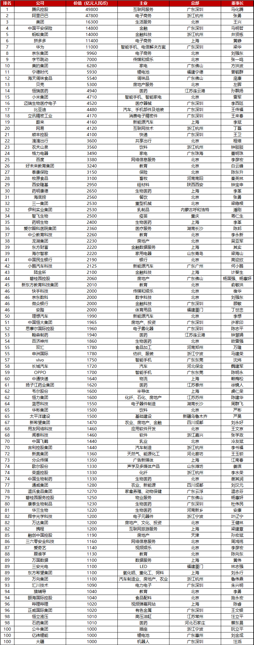 11月25日,胡潤研究院最新發布了《胡潤中國500強民營企業》,公布了2020年中國排名靠前的500強民營企業。據胡潤研究院透露,本年胡潤500強榜單的上榜門檻為230億元,相比較去年提高了90億元,即64%。本次上榜企業的總價值共為56萬億元,相比去年增加了20萬億元,相當于去年中國GDP的近六成;企業的平均市值更是達到1100億元,相比較去年增長了390億元,年增長55%,創歷史新高。