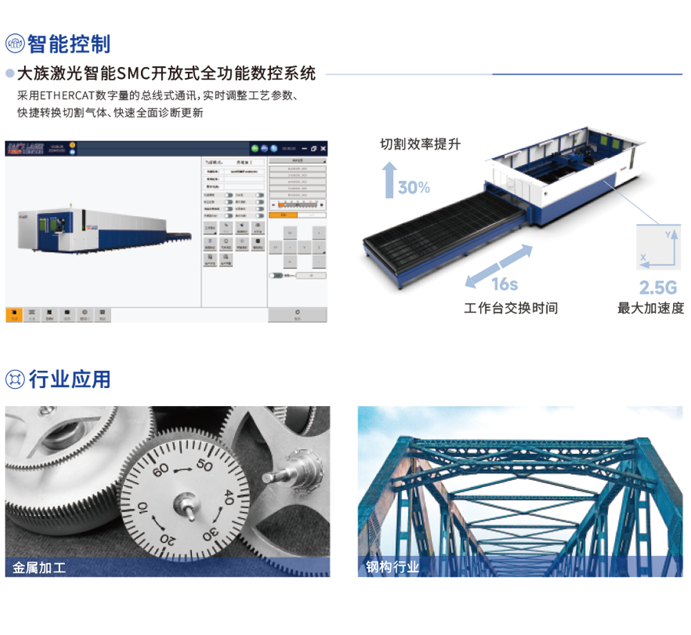 設(shè)備高動(dòng)態(tài)性能驅(qū)動(dòng)充分發(fā)揮激光器切割速度,一再打破板材厚度極限,將加工效率提升至新境界